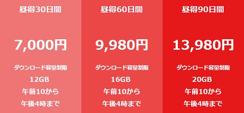 「昼得プラン」は、午前10〜午後4時までしかダウンロードできないけど、料金は格安。